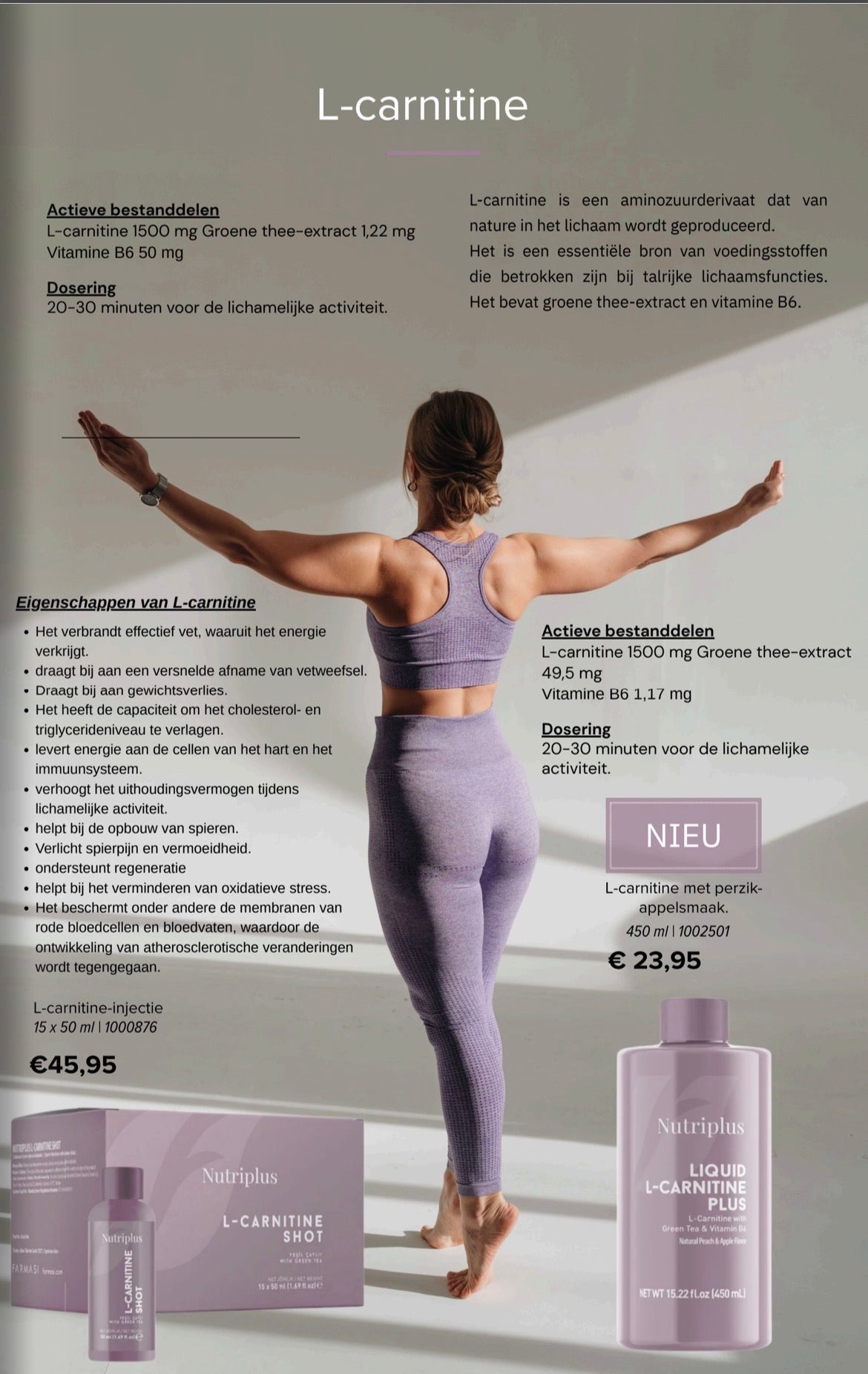 L-carnitine iseen lichaamseigen, semi-essentiële voedingsstof (aminozuurderivaat) die vetzuren naar de cellen transporteert om ze om te zetten in energie. Het is cruciaal voor de vetverbranding en energievoorziening van spieren en hart, en wordt vaak als supplement gebruikt om sportprestaties, herstel en gewichtsverlies te ondersteunen.
